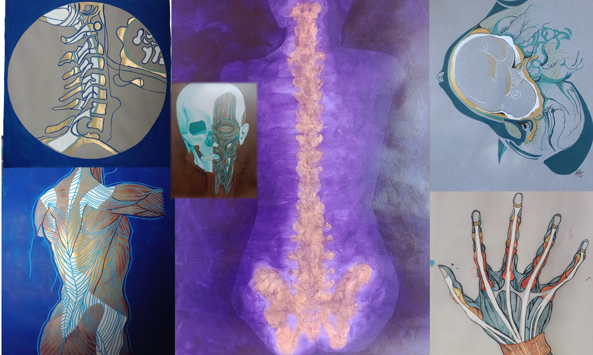 "Mi trabajo se enfoca en la belleza arquitectónica de la anatomía interna: me fascina la estructura interior del cuerpo. ¡Dónde la gente ve simples órganos, huesos, veo catedrales y arabescos! Llevamos adentro un mundo a la vez funcional y también interactuando constantemente con el exterior. Me inspiro en imágenes médicas de todas épocas como la colección de ceras del Museo La Specola de Florencia ó el trabajo del doctor Gunther Von Hagens, o radiografías. Reinterpreto buscando mostrar la poesía del cuerpo. "